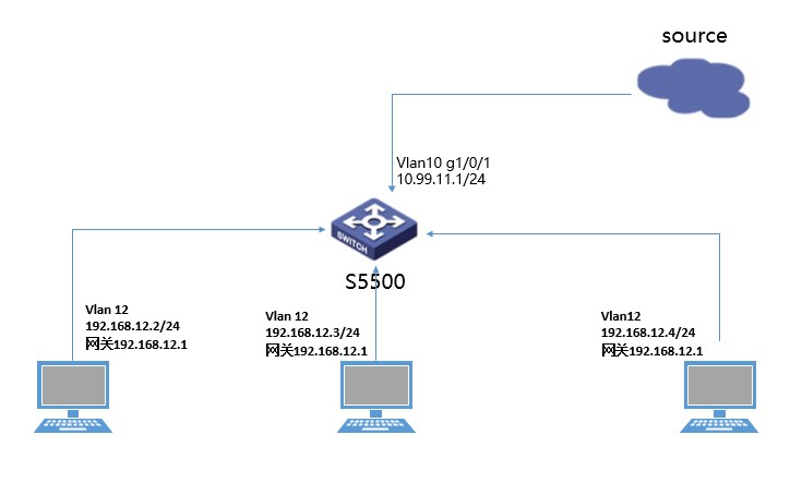 实际环境有些不同,我只有1个s5500 ei交换机,而且组播源不是pim-dm协议,只有igmp-snooping