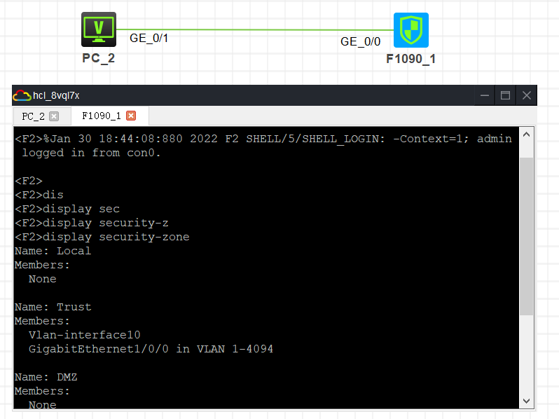 F1060端口二层(Trust域),并加入vlan中,vlan配置了接口ip