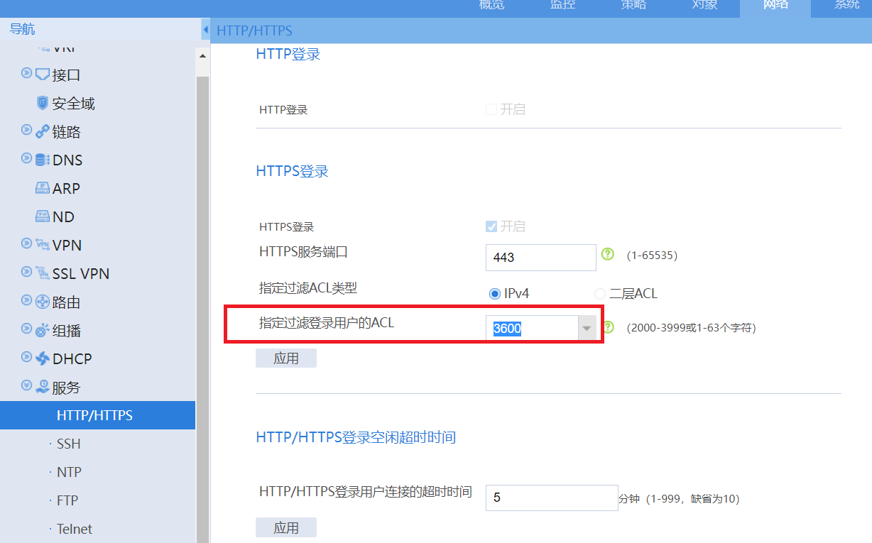 防火墙F1090的web界面如何做web的限制访问?目前无法进入底层敲命令,只能是在web界面上做https的访问限制,请问如何做呢?