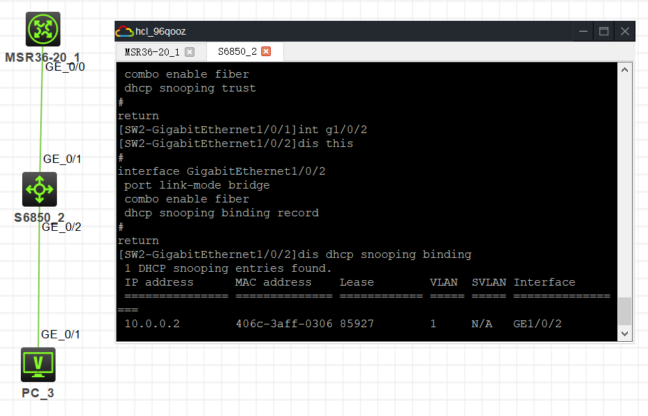 名侦探毛利小五郎提示您,不要在1/0/1口开启dhcp snooping binding record,应该在1/0/2~4口开启记录。