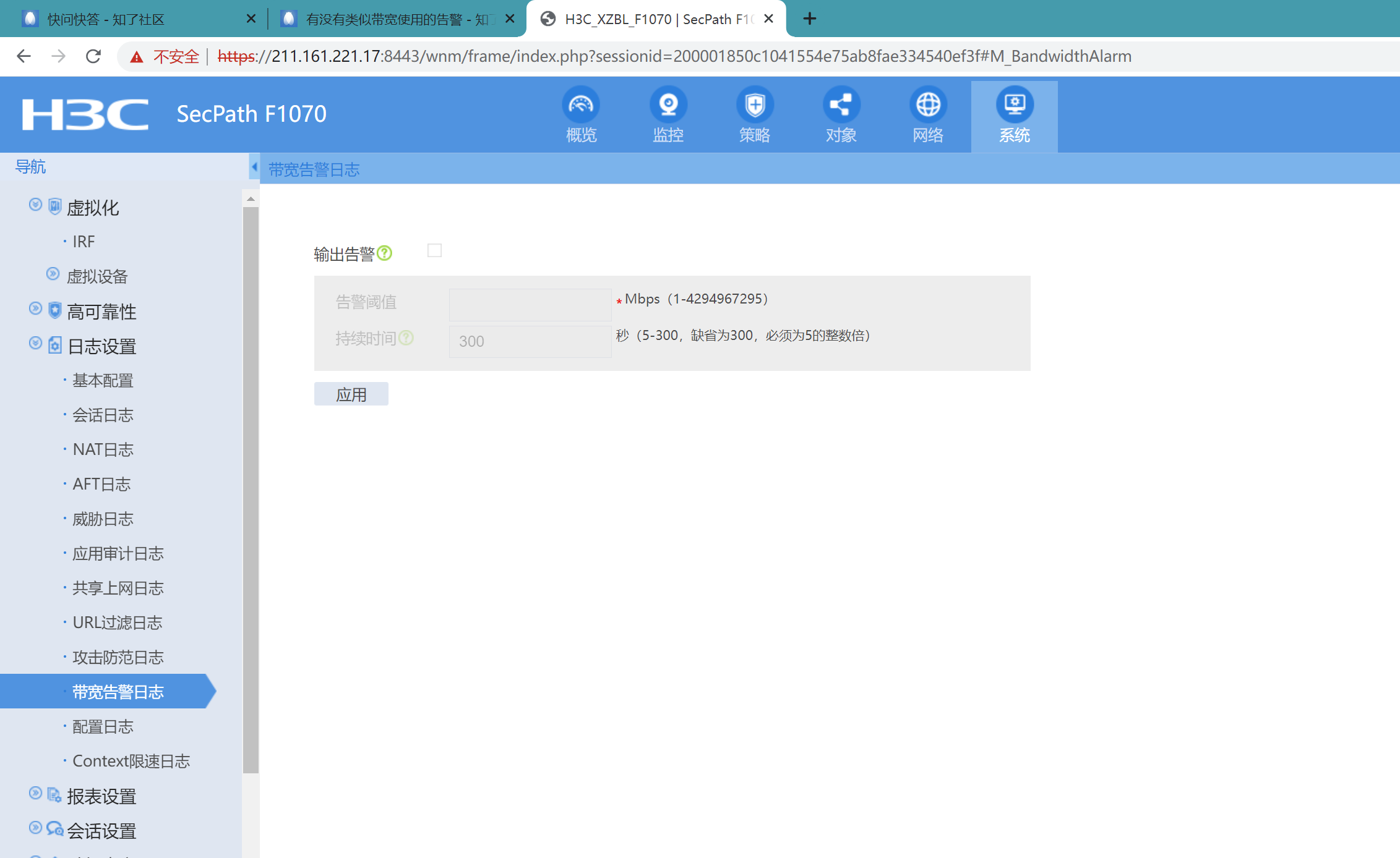 防火墙有没有这样的功能 就是我的外网带宽使用率到了某个设置的阈值比如百分之八十 会有个告警提示  如果有 怎么设置   谢谢各位