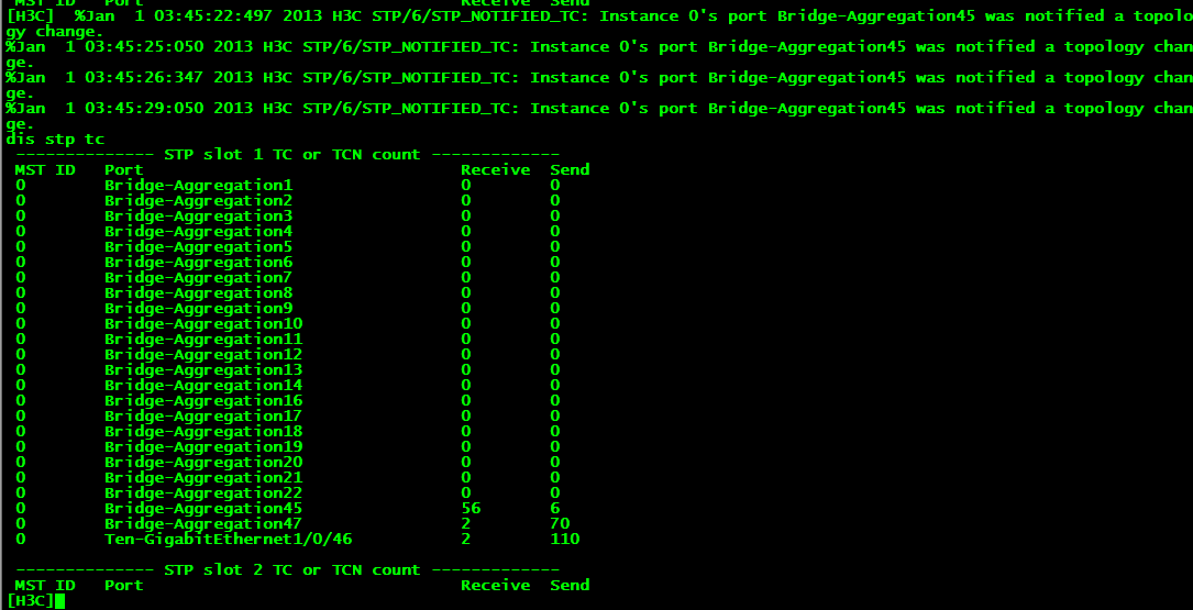 接口收到stp tc 报文,查下BAGG45的接口互联的什么设备,一般是有设备接口状态频繁切换导致的,优化下整网STP配置