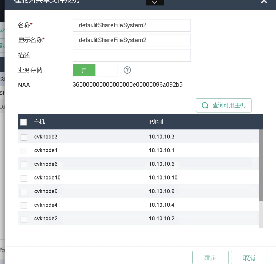 划分块设备之后,添加共享文件系统,将存储挂给需要适用的主机即可