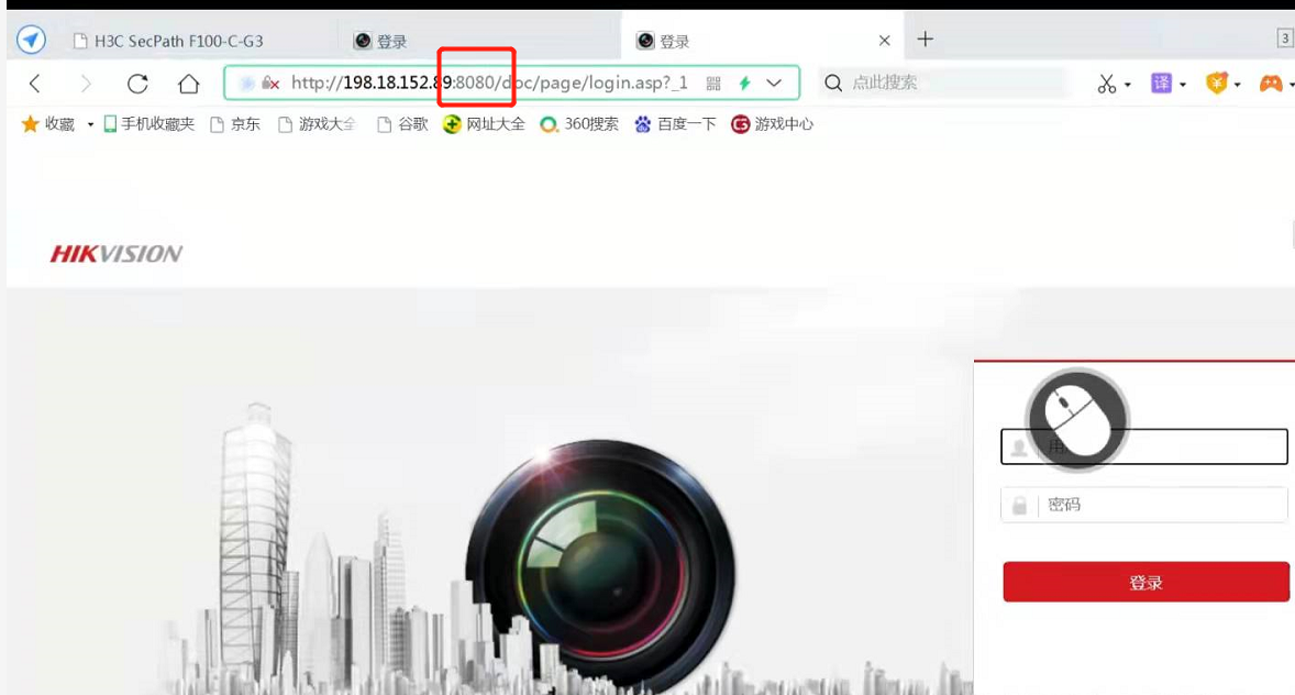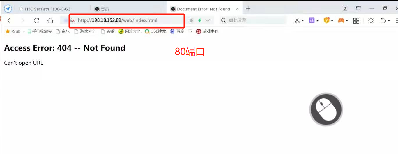 组网:录像机-接入-汇聚-核心-防火墙-电脑。电脑模拟外网进行访问,发现防火墙做的映射80显示404.8080端口的正常。有大佬知道怎么回事吗