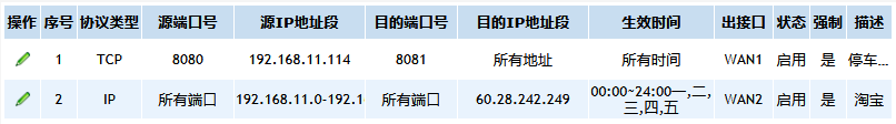 感谢!! 策略路由是有的,设置如下。 Ping测试是用的公网其他地址,如 www.baidu.com