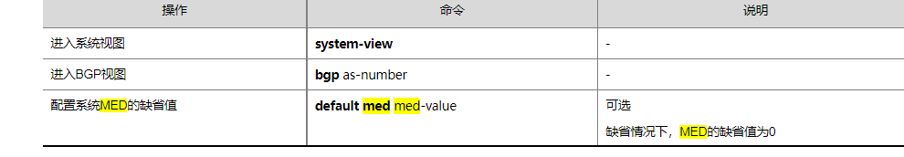 目前组网有两条出口,两条都是走的bgp,查看 bgp路由的时候发现,只有一条线有med数值,另外一条连数值都没有,那他是空的还是有默认的呀?还有就是可以更改med值吗?