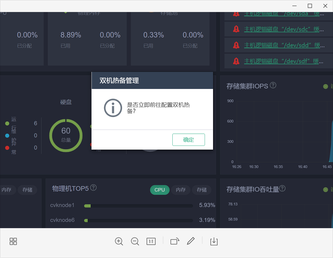 使用这个版本6台设备开局 UIS安装引导完成后强制必须双机热备 没有取消选项,但是安装双机后有提示双机HA 没有启动,还有就是超融合平台一直报主机逻辑磁盘缓存异常