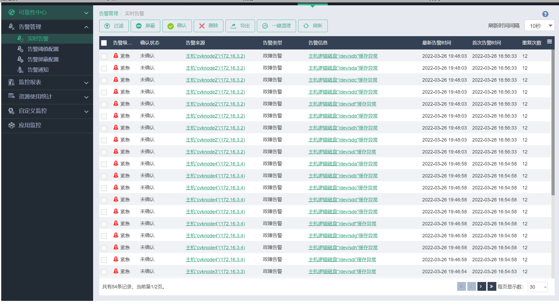 新版本都是强制配置双机热备的,缓存异常可以看下阵列卡缓存配置是否正确