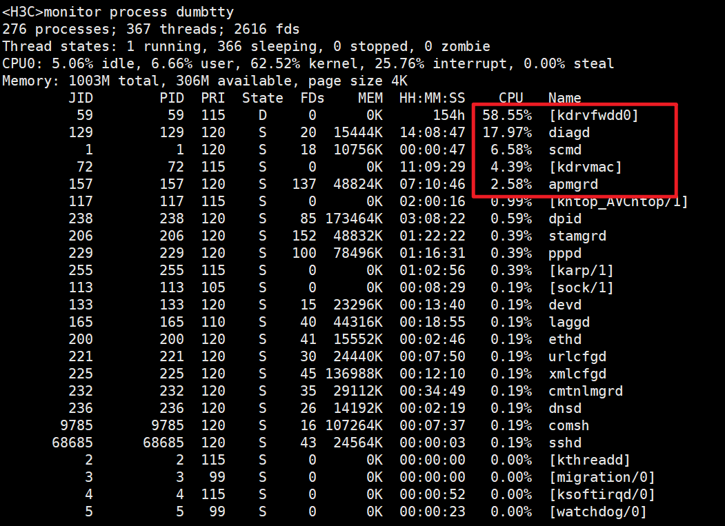 kdrvfwdd0转发进程太高,建议确认下流量是否正常 ,dis logbuffer看下是否有哪些日志反馈。