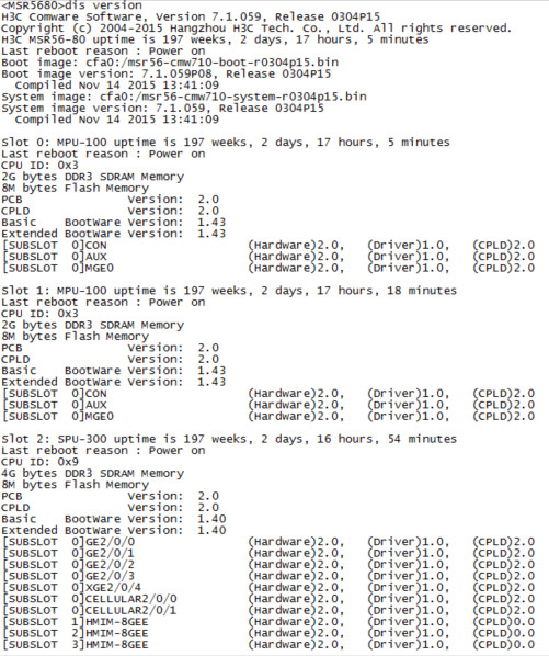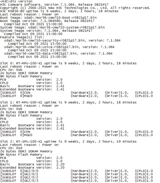 两台H3C MSR56-80,一台使用了好多年,一台是新采购的。版本信息如下