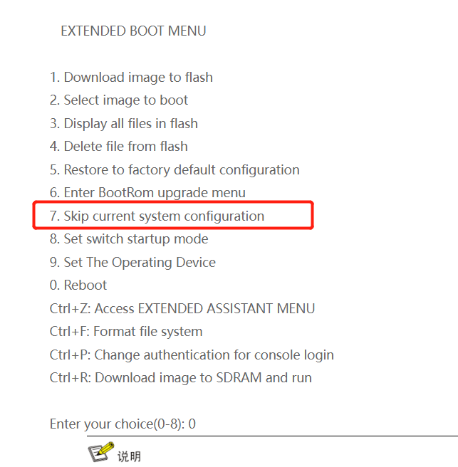 重启交换机把,CTRL+B进入到bootware ,选择7跳过试试