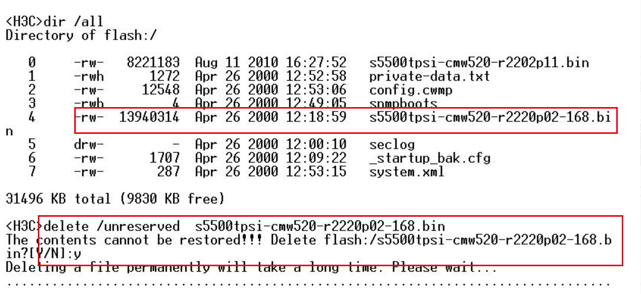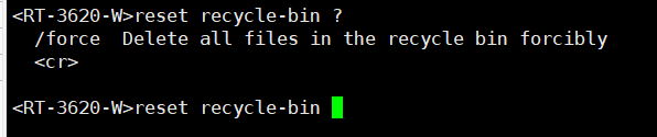 或者执行 reset recycle-bin [ file-url ]命令清除回收站中的文件,释放Flash空间