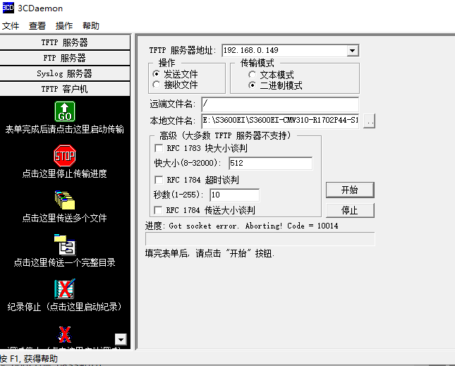 2、另外就是进入启动菜单后,用ftp传输时提示:目标计算机积极拒绝,无法连接。但可以ping通