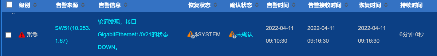 这是我拿现网设备做的测试,有谁知道这个告警接收时间和恢复时间为什么是一样的时间呢