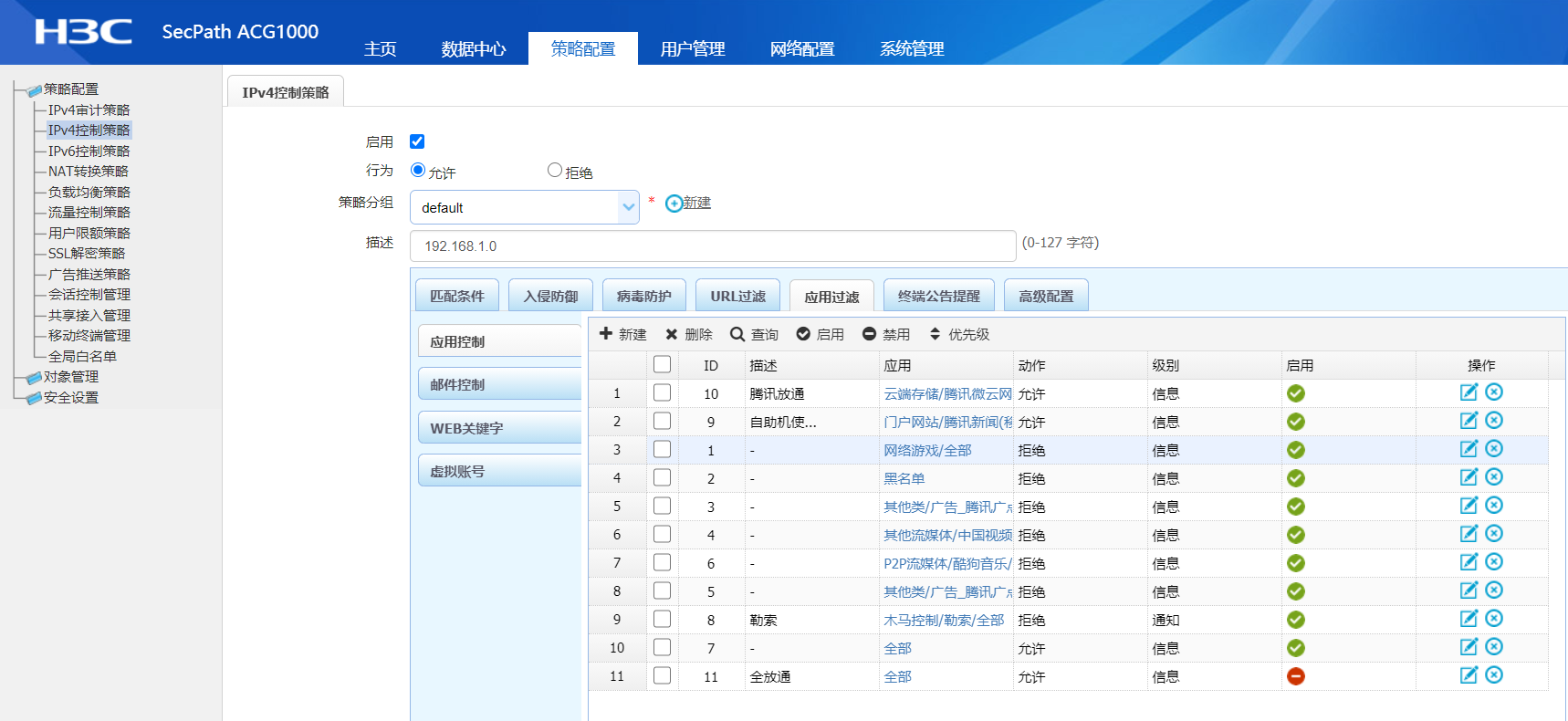 想知道这个是在里面设置让他不用阻断,应用控制里没有这个叫policy_3的