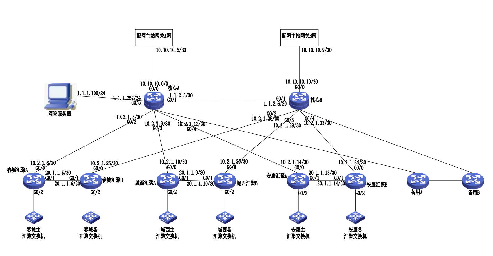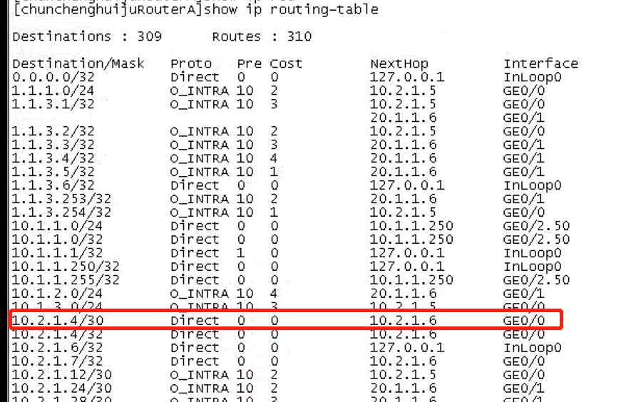 核心A可以ping通下层汇聚路由器春城A的子接口地址以及vrrp虚拟的网关,但是ping不通下层汇聚春城A路由器学到的IP地址。