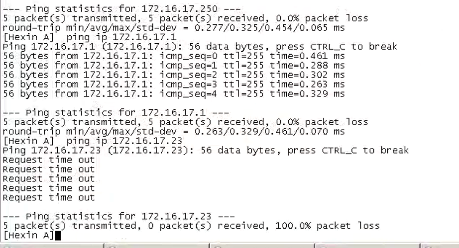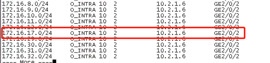 春城A也是MSR3640 ping172.16.17.23很快就能ping通,它的上级路由器有相应路由但是ping不通