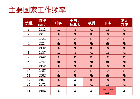 看看AP信道的划分,各个国家支持的信道是不一样的