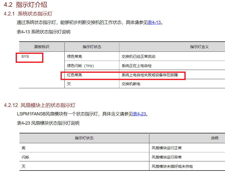 风扇模块应该有自己的指示灯,SYS是系统指示灯。