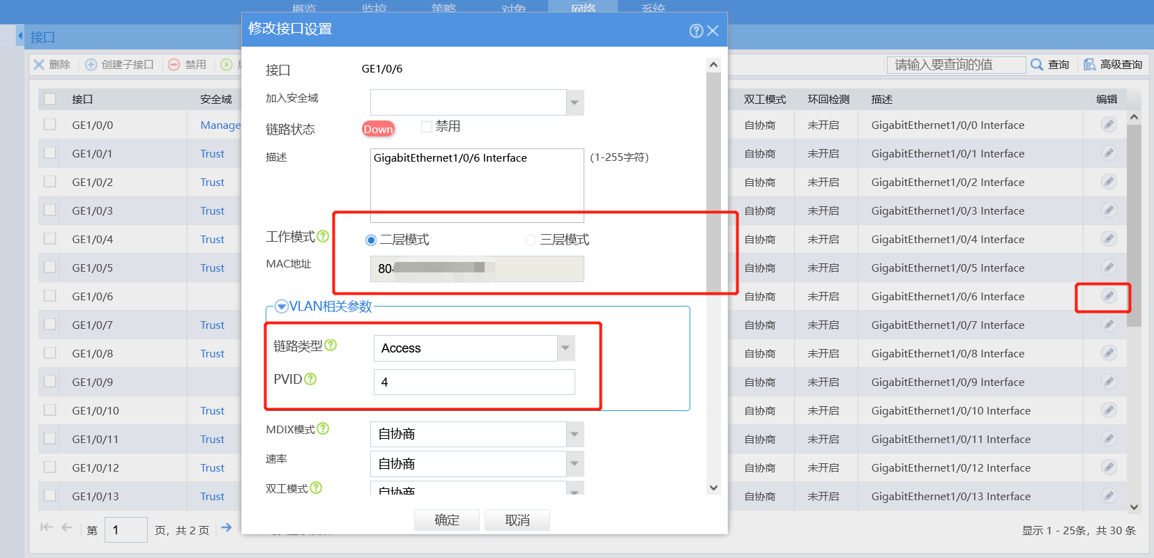 先使接口工作模式改成二层,pvid 你接口属于哪个vlan就写几