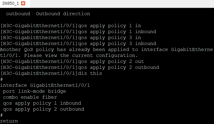 应用一个流镜像,一个qos里面多个cb对就按照顺序匹配