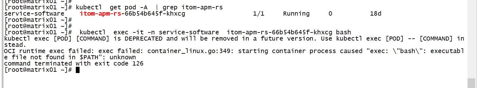 UC2.0进入容器的命令换掉了吗,现在使用kubectl exec -it -n service-software 容器名称 bash 进入容器报下面的错误