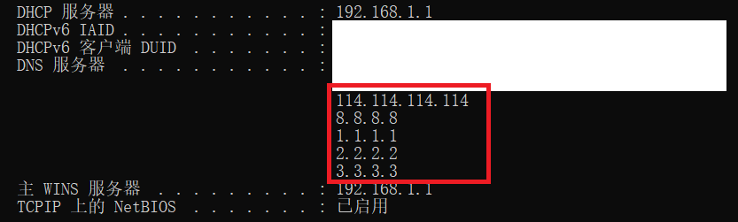 1、首先看客户端的类型,比如window,一般只能接受2个DNS,如果你dhcp配置超过2个dns,多余的就丢弃