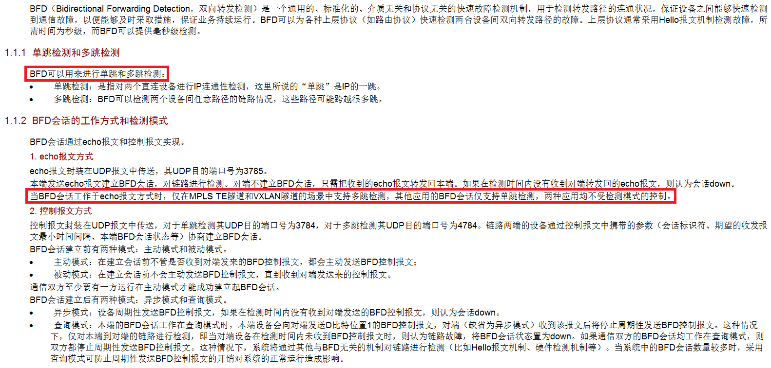 但这样你要使用控制报文方式,两端的设备都要能支持bfd。而单跳可以用echo方式,只要本端支持bfd即可。