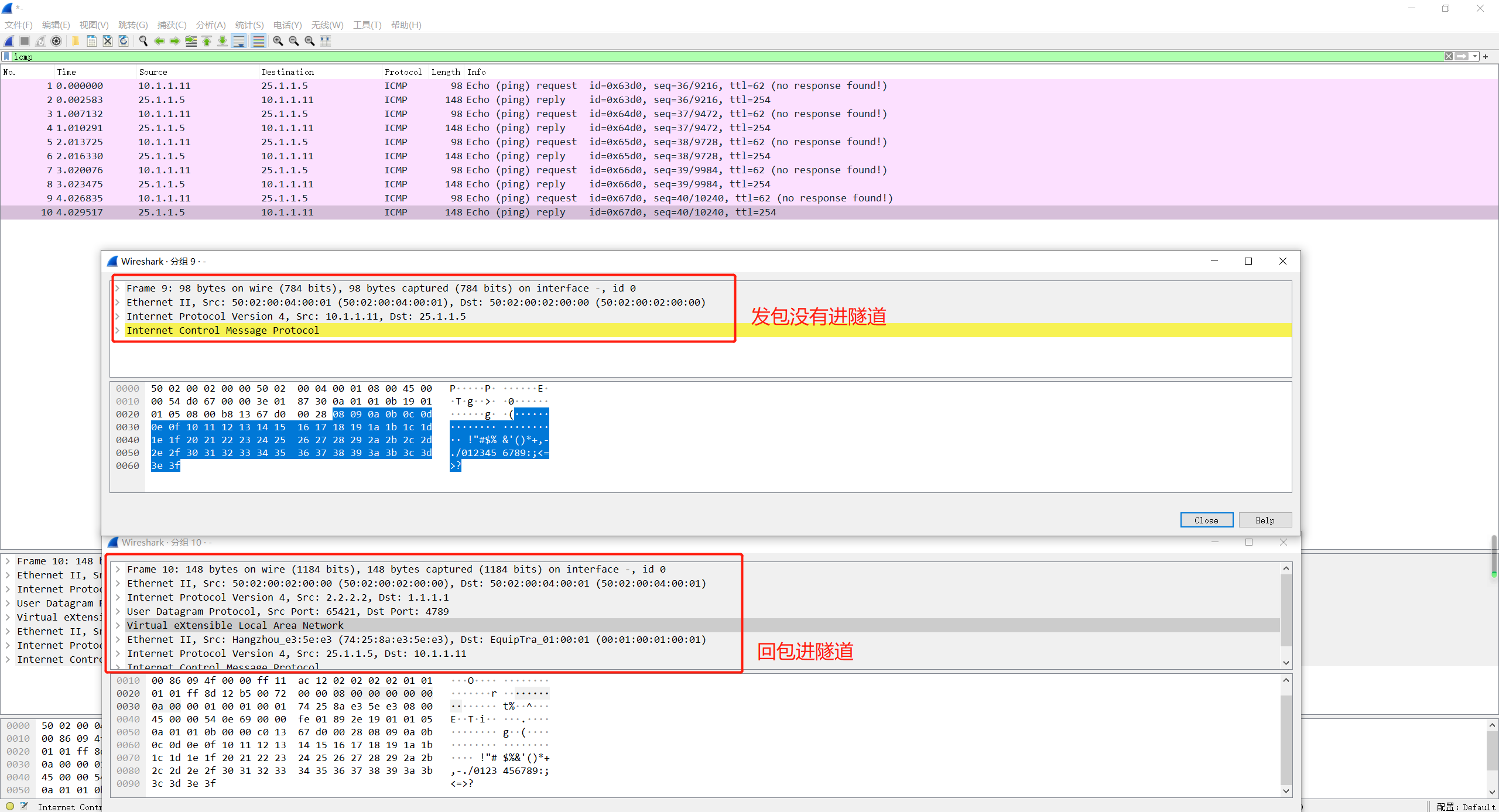 你这个好奇怪。按道理来回包都会进隧道解封装。