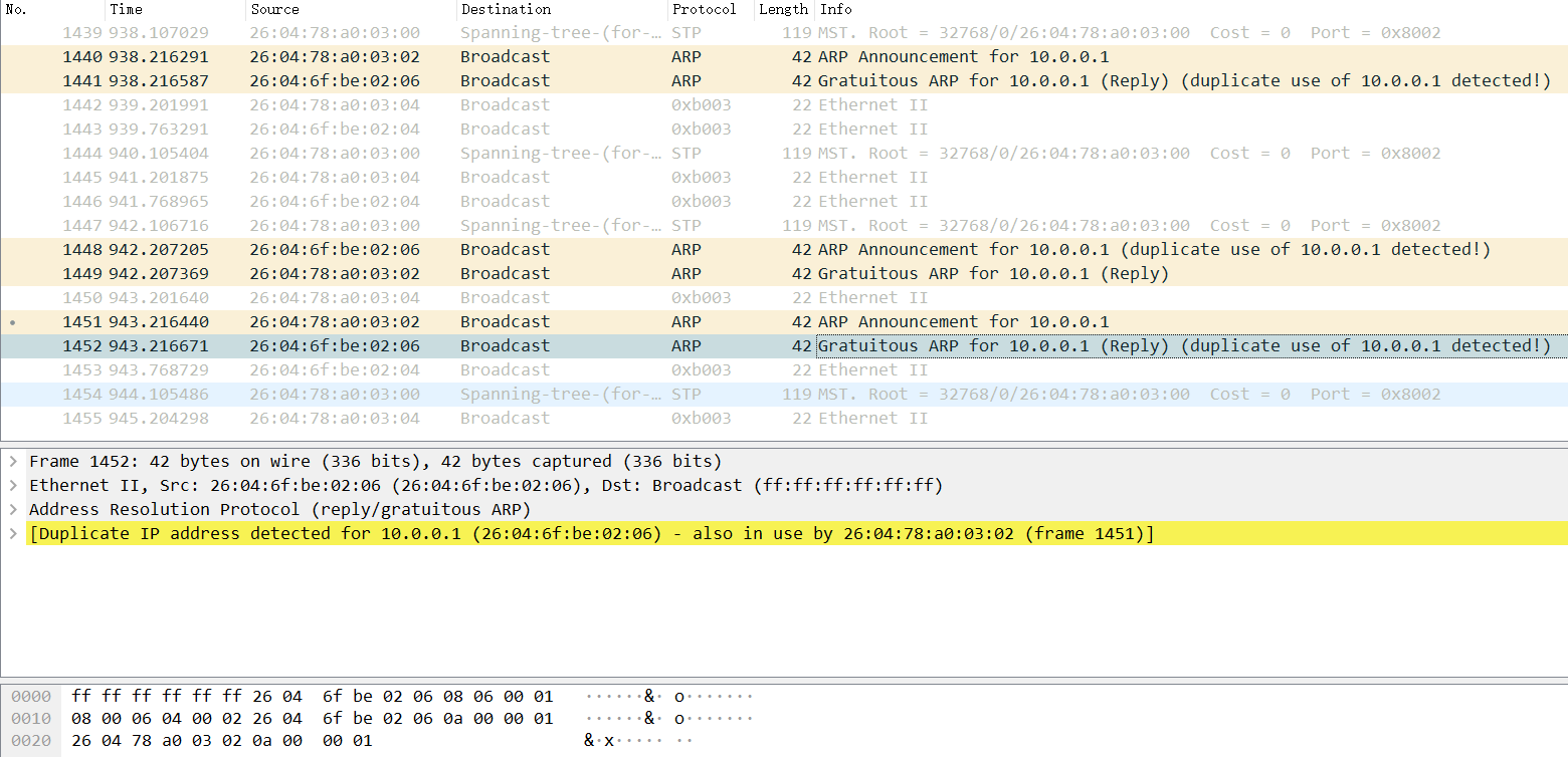 原因是本端用来探测冲突的免费arp被对端响应(nat server也会响应免费arp)。
