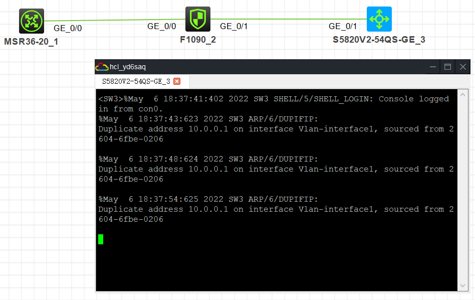 3、原来好像在华为上碰到过类似的问题,配置nat server  的地址后会发ARP检查,你的防火墙和交换机直连,地址和交换机冲突,所以提示了。你可以测试一下,防火墙接口正常配置,把交换机的地址改成.3 看还提不提示了