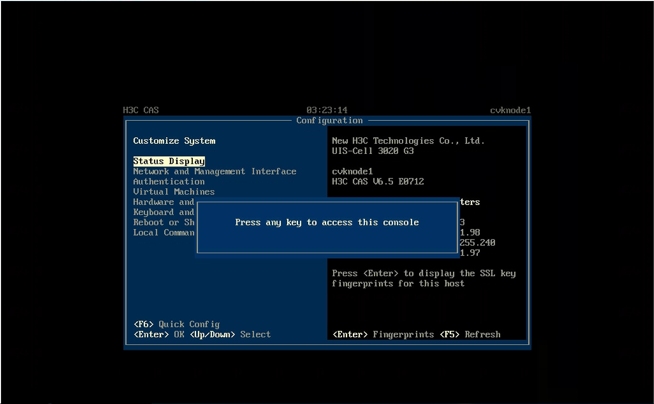UIS管理平台无法登陆,管理地址也 ping 不通,从服务器的HDM口 查看后台蓝白界面 按任意键都无反应。