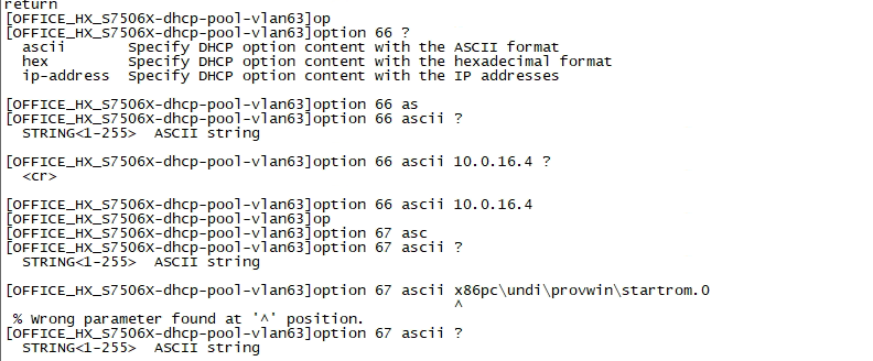 S7506X交换机DHCP option67配置报错