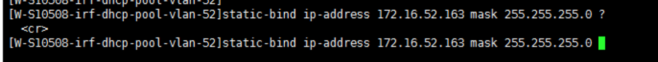 [W-S10508-irf-dhcp-pool-vlan-52] static-bind ip-address 172.16.52.163 mask 255.255.255.0 ?
