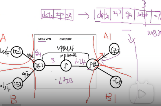 VPN只有mpls mpls VPN解决了私网地址重叠,如下图A跟A1是一个vpn instance ;B跟B1是一个vpn instance。