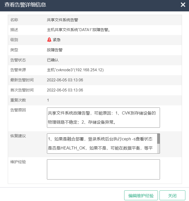 UIS 0720 共享文件系告警
