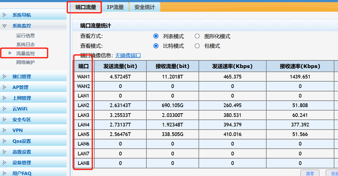 WAN1连接100M电信专线,WAN2连接30M移动专线,请问WAN2有没有在使用,能不能查看使用情况?