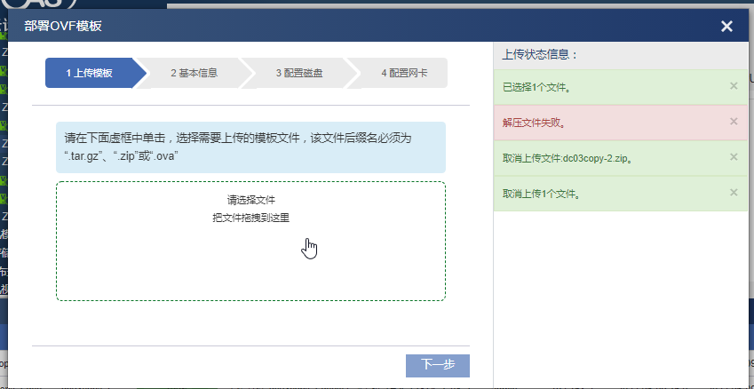 导入CAS平台时一直在部署ovf模板的地方说导入格式错误