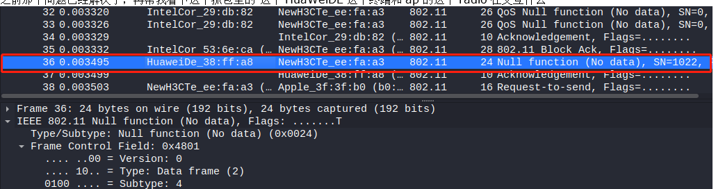 这个抓包里的 这个HuaWeiDE这个终端和ap的这个radio在交互什么