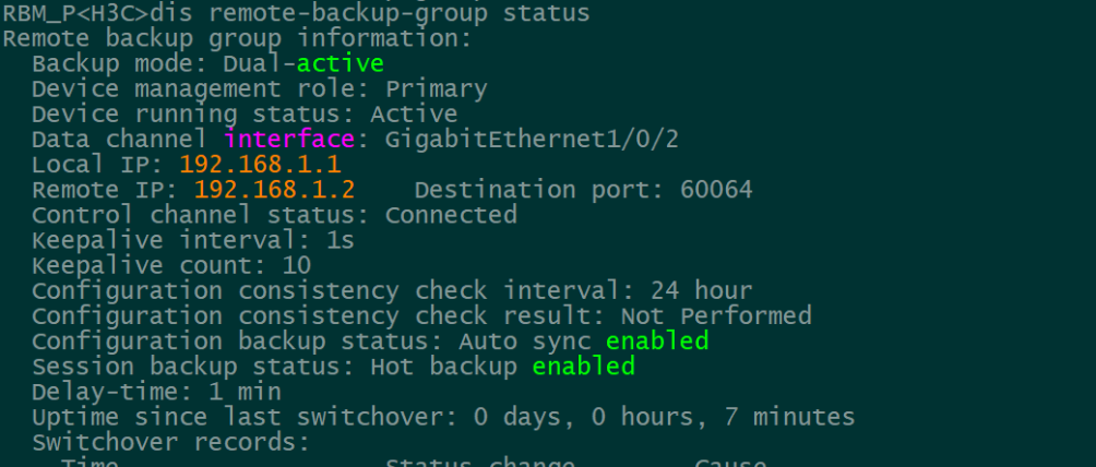 display remote-backup-group status命令用来显示HA的状态信息。