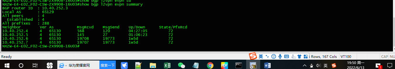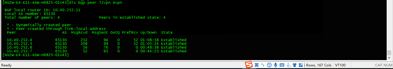 B-leaf与四台spine BGP邻居关系正常