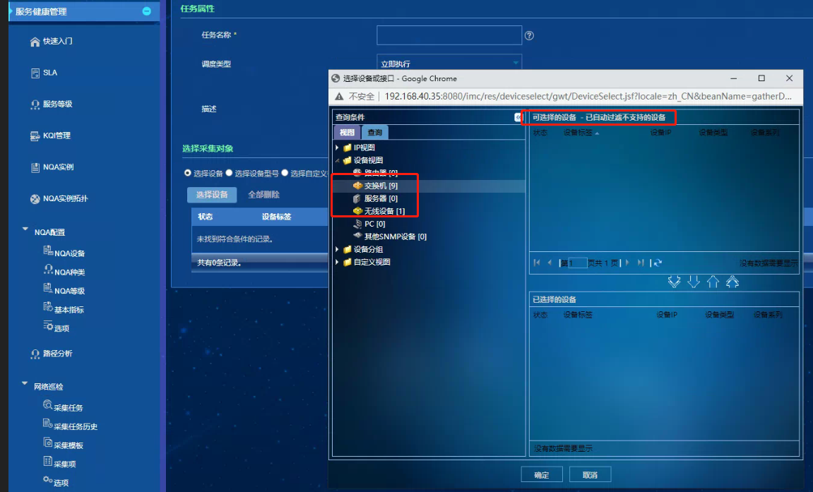是当前纳管的设备不支持该巡检任务