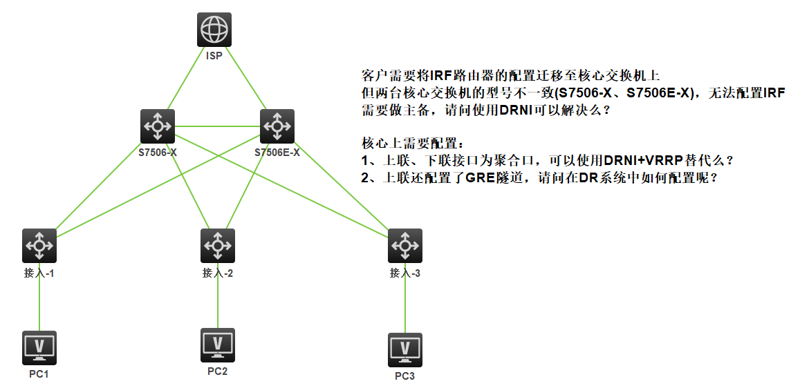 不同型号不支持DRNI,可以用VRRP做核心也行