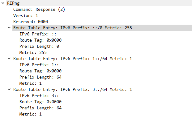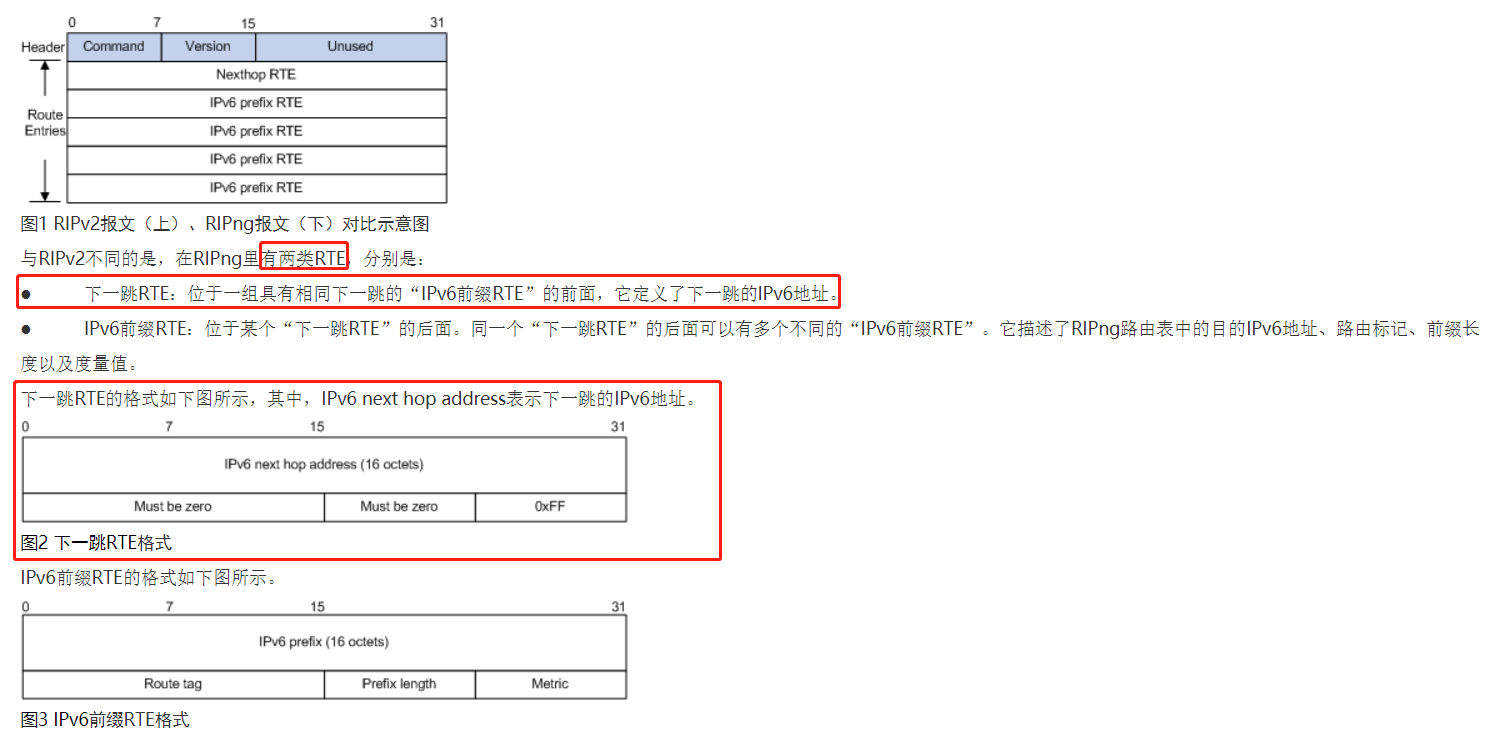 这个确实有下一跳RTE,但是RIPNG的话,更新源地址是FE80开头的链路本地地址,所以会出现第一个::/0的RTE,此时本端收到之后就会根据对方的链路本地地址来做下一跳地址