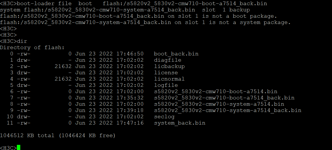 并通过 boot-loader file boot flash:/s5820v2_5830v2-cmw710-boot-a7514_back.bin system flash:/s5820v2_5830v2-cmw710-system-a7514_back.bin slot 1 backup 命令指定备份的bin文件为系统备份启动文件,但是为什么报这两个bin文件 不是系统文件呢?