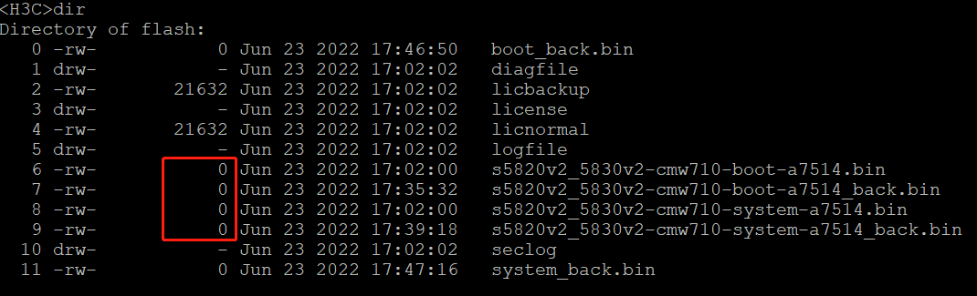 我这边升级交换机的时候,备份copy了系统的boot.bin和system.bin文件,