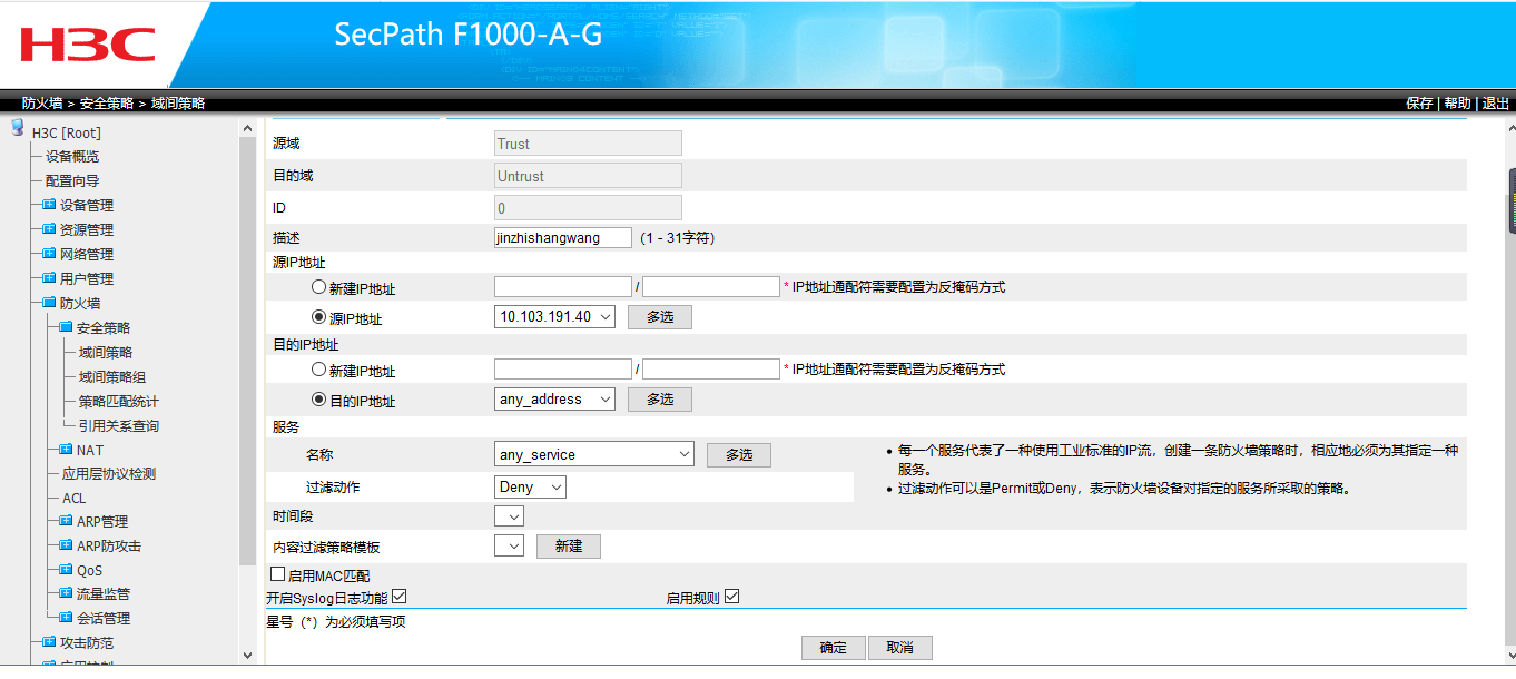 看下内网用户接在那个接口下面:看下你的内网用户接在哪个口上,这个口对应的哪个安全域