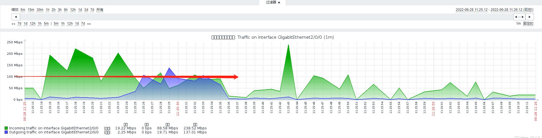 实际测速约是100M,监控的服务器网卡速率也是100M左右,但是zabbix上显示路由器超过100M。