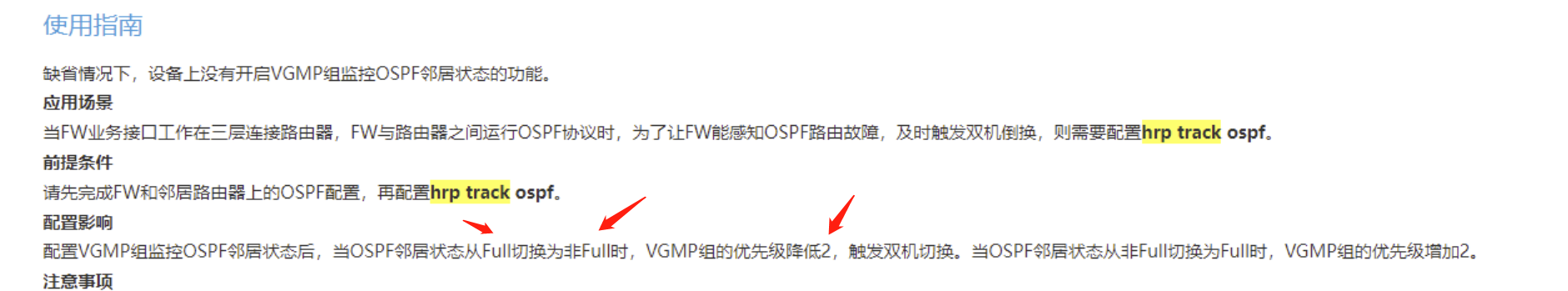 如果对上ospf,对下vrrp,我这边是部署主备模式,当接口UP,对端路由器接口下的IP被我删除后,接口依旧UP,ospf经过40秒后邻居端口,但是主备依旧没用切换;vrrp也不会切换,会出现流量黑洞,只能通过NQA监控下一跳;华三的RBM有没有方式监控ospf邻居状态