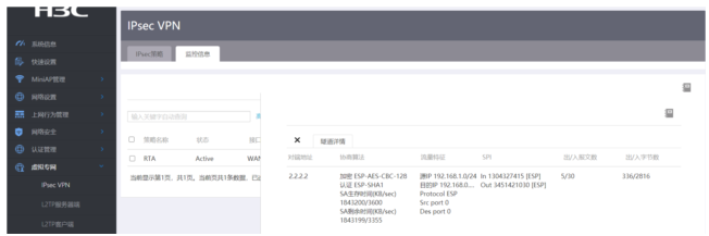 #单击【虚拟专网】--【IPsec VPN】--【IPsec策略】,点击【添加】